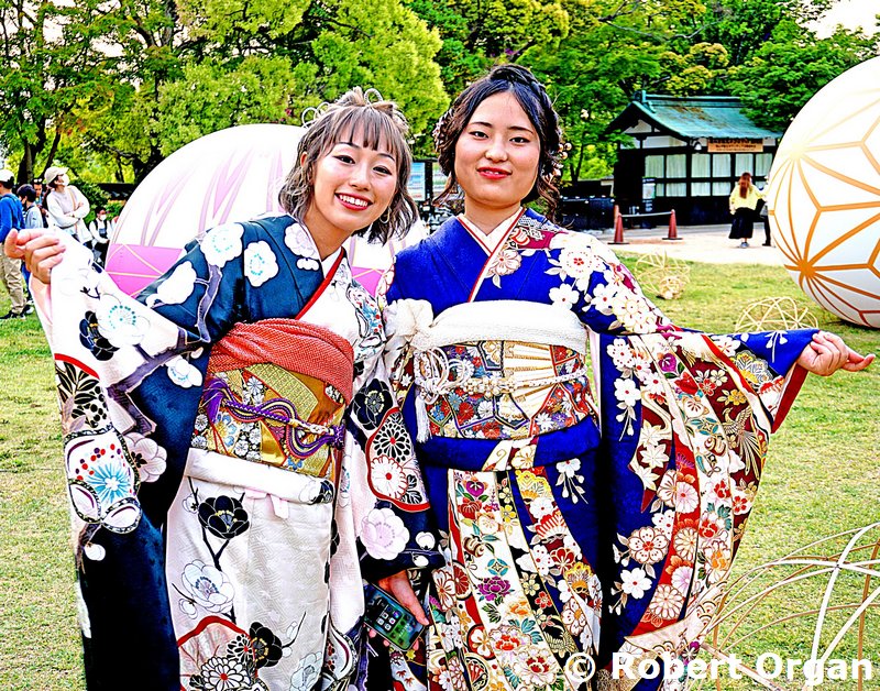 Girls in kimonos, Okayama Castle